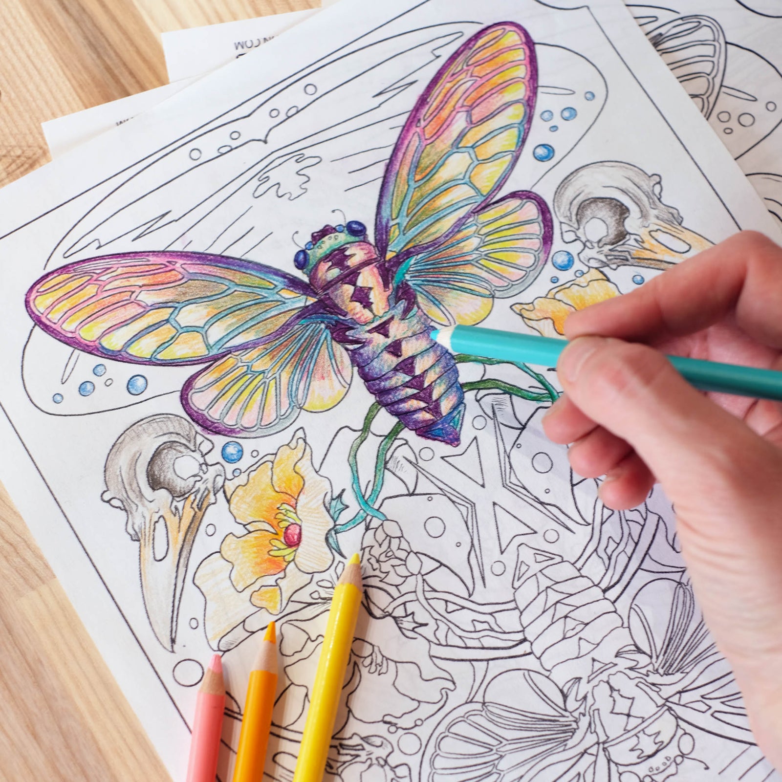 The cicada reminds us that sometimes we must embrace radical change, rather than gentle transformation. There is a time to cast off the old and break with the known. The skulls and flowers included in this illustration are reminders of the way death yields new life, the changing of season, and the inexorable march of time." -Siolo Thompson