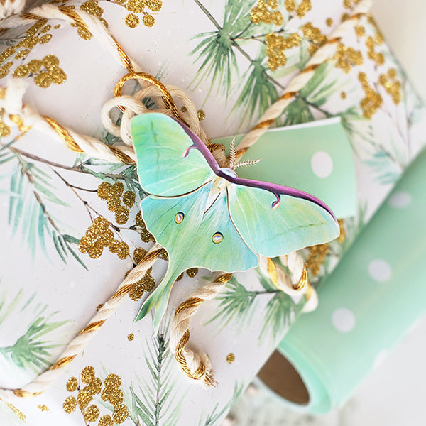 Don't be fooled by the name - the 'Spring' Luna Moth Set is perfect for every season! Featuring two versions of the distinctive Luna moth (Actias luna), and a Pearl Morpho Butterfly, this three-pack is a timeless favorite, and a wonderful introduction to the beauty of moths and butterflies. These life-sized specimens make gorgeousΒ additions to gift-wrapΒ as well!Β