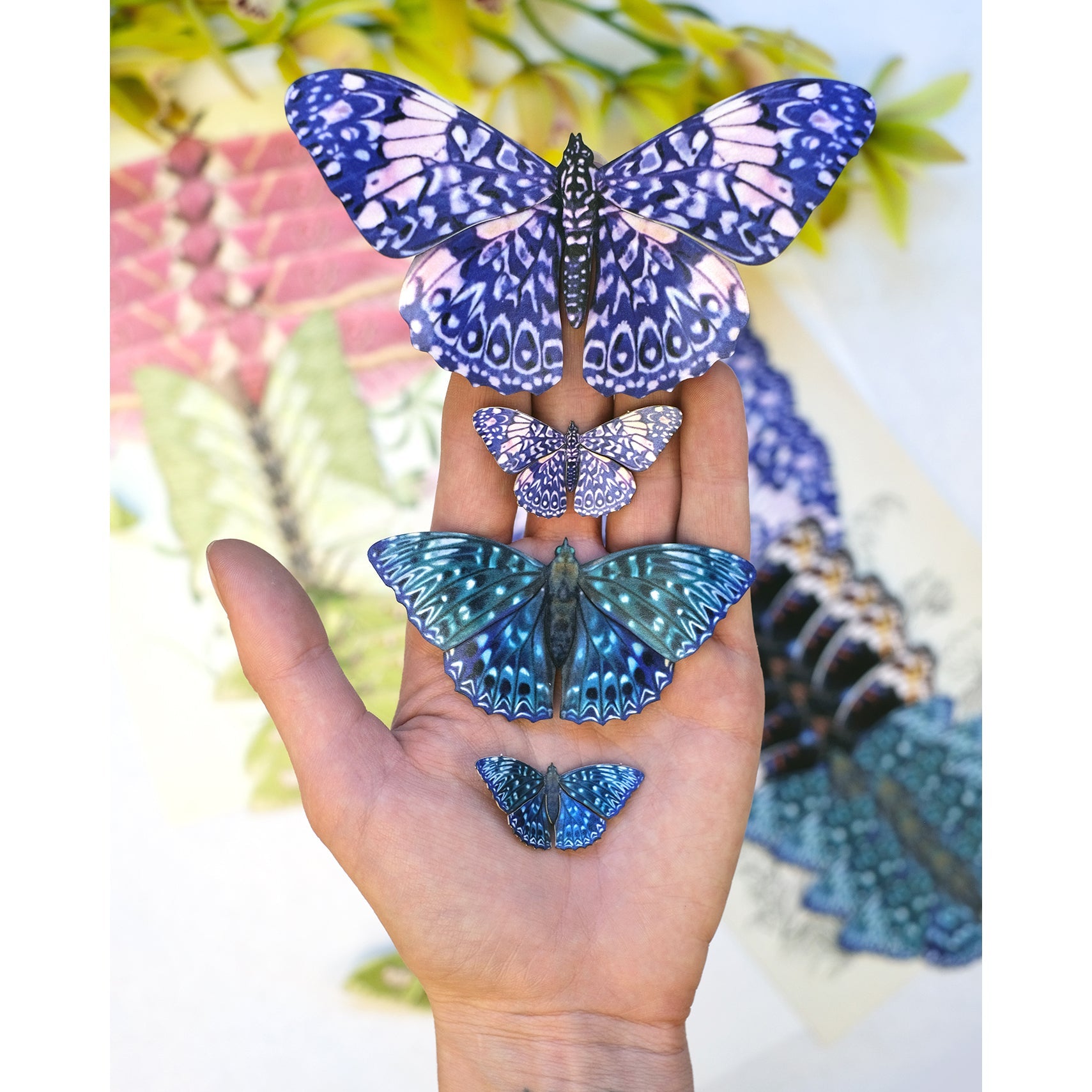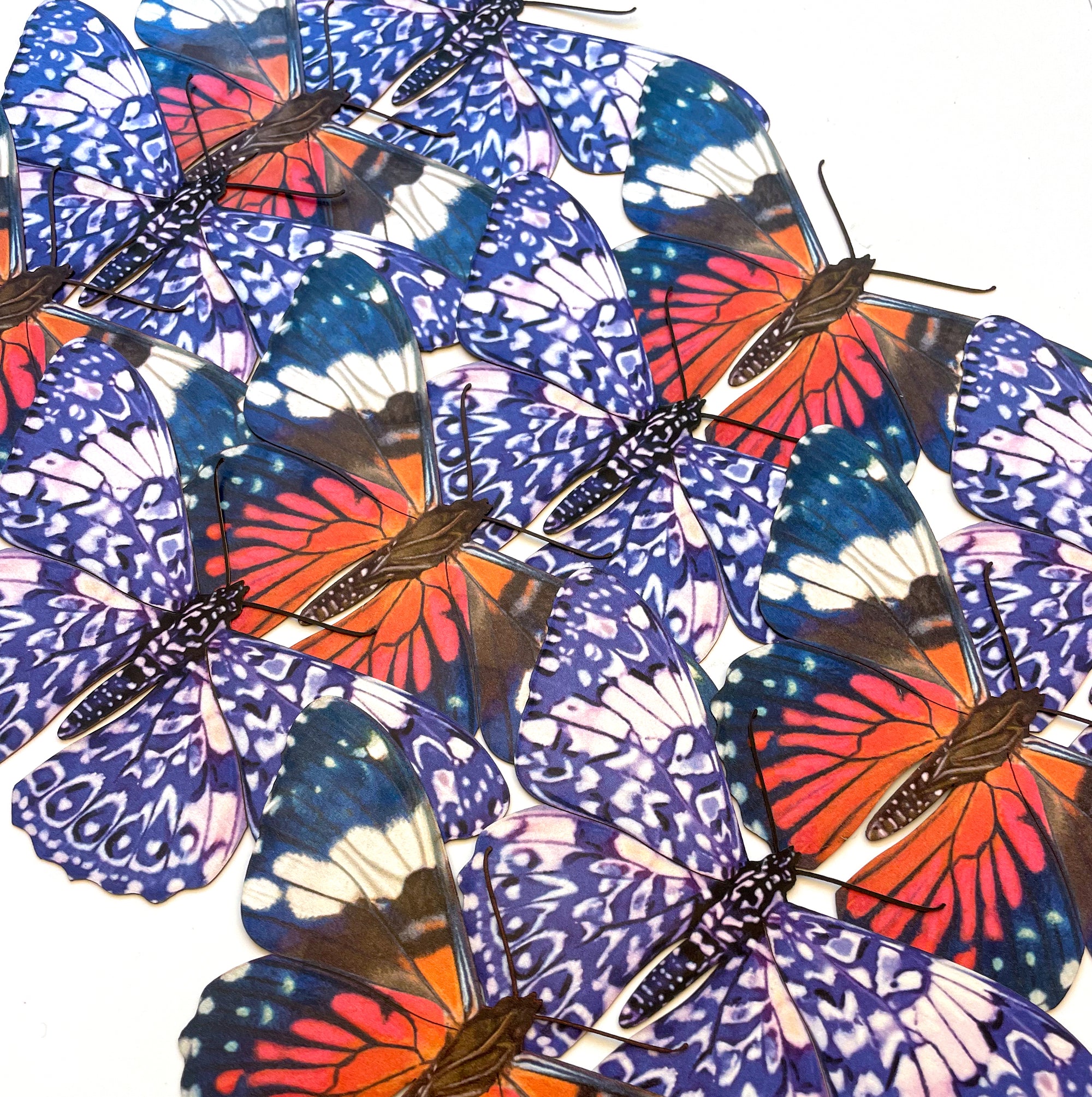 These paper butterflies are printed double-sided on heavy-weight cotton paper, and then expertly lasercut with a precise level of detail. They are based on real specimens, and accurately depict their size and coloration. Resin safe.